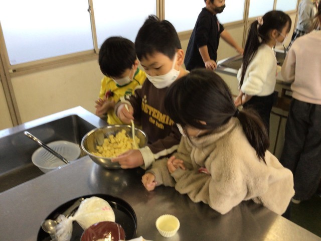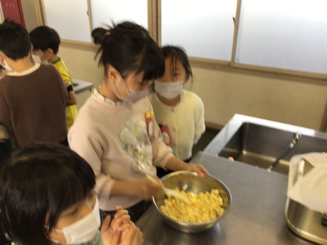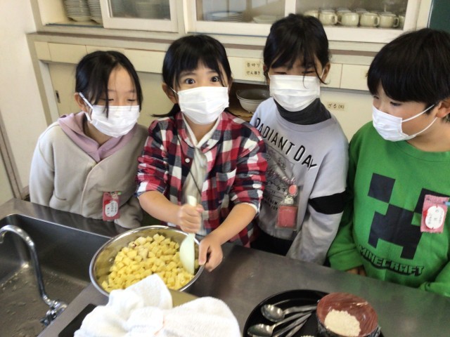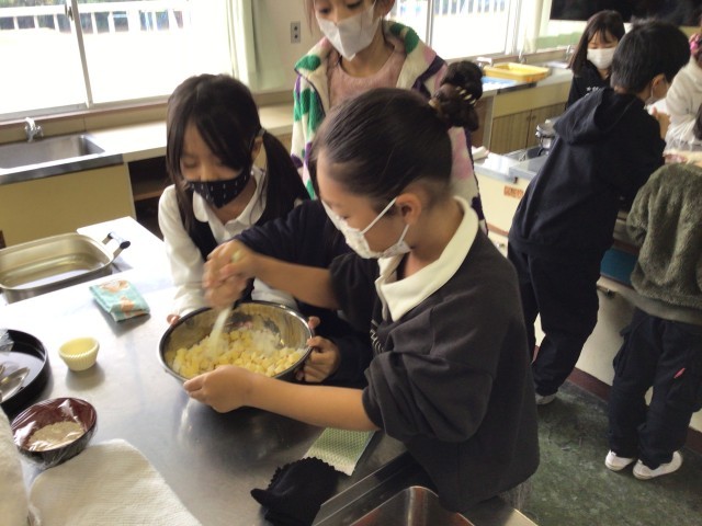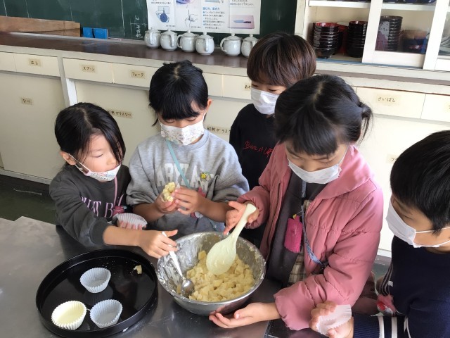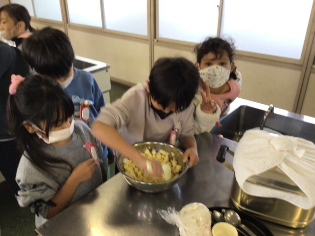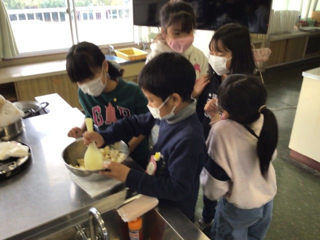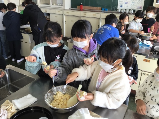 鬼まんじゅうづくり(2年生) 公開日 2025/12/04 更新日 2025/12/04 2年生 先日のいもほりで収穫できたサツマイモで、鬼まんじゅうを作りました。材料をまぜている間、「おいしくなあれ!」と魔法の言葉をかけていました。蒸していると、あま~い、おいしそうなにおいが・・・。給食のときに一緒においしくいただきました。 +7