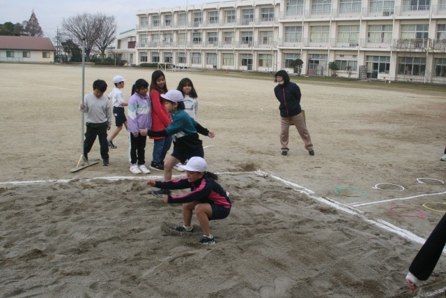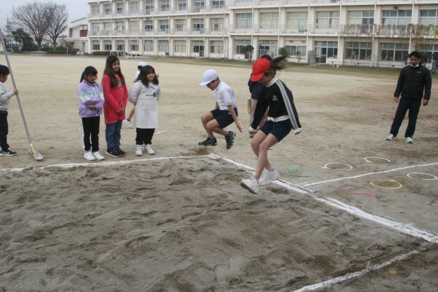 走り幅跳び(3年生) 公開日 2025/12/08 更新日 2025/12/08 3年生 3年生の体育の時間・・・走り幅跳びを行いました。助走の足あわせの練習をした後、「高く」「遠く」に跳ぶこつを先生から教えてもらいました。S先生の見本のジャンプがすごくて、大騒ぎ!ぼくもあんなふうに跳びたい!と思った様子でした。 +5