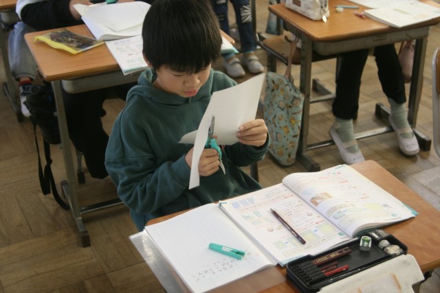 長方形(2の1) 公開日 2025/12/09 更新日 2025/12/09 2年生 2年生の算数の時間・・・教科書に書いてある通り、紙を切って、紙を折って「長方形」を作りました。同時に、「直角」というキーワードや「辺」の長さなど長方形になるための条件を 学んでいました。 +4