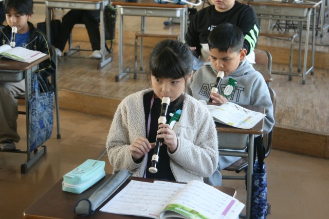 クリスマスコンサートに向けて(3の2) 公開日 2025/12/10 更新日 2025/12/10 3年生 3年生の音楽の時間・・・クリスマスコンサートに向けて、練習をしていました。「レッツゴーソーレ」をリコーダーで演奏しました。学習発表会の時よりも、速いテンポで演奏することができるようになっています。また、「雪のおどり」を振りをつけて、大きな声で歌いました。クリスマスコンサートが楽しみですね! +5