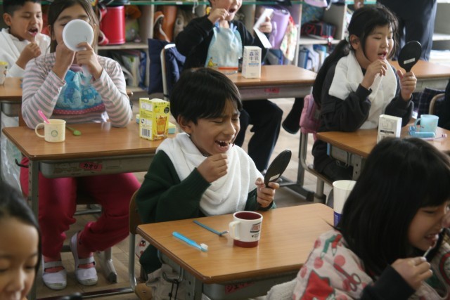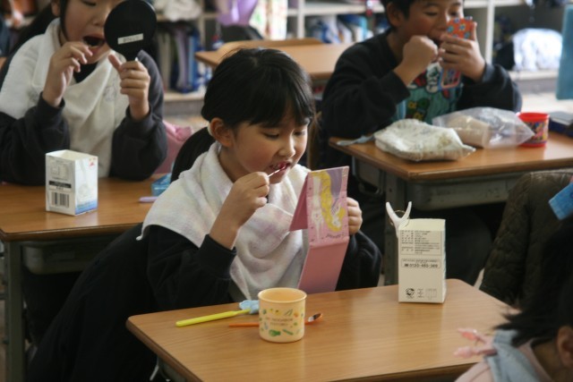 歯磨き指導(3年生) 公開日 2025/12/11 更新日 2025/12/11 3年生 3年生が「歯磨き指導」を受けました。小学校にあがってから、3回目なので、もう歯磨きの基本は知っている様子でしたが、歯磨きの大切さを学ぶ良い機会になっています。しかし・・・染め出しは苦手な様子でした! +5