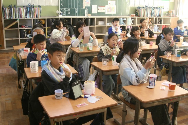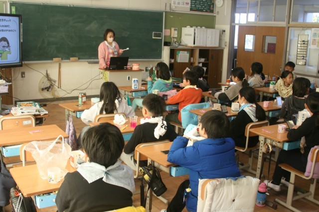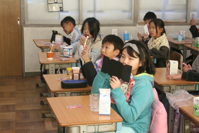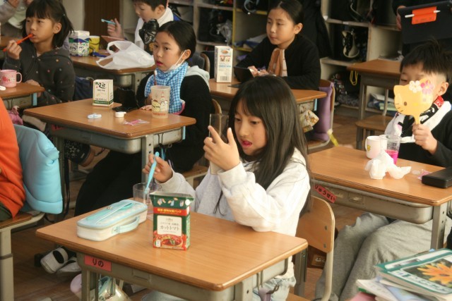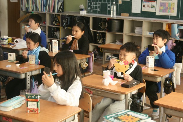 歯磨き指導(4の2) 公開日 2025/12/12 更新日 2025/12/12 4年生 4年生が、歯磨き指導を受けました。しっかり磨いたつもりでいても・・・やっぱり磨き残しがたくさんあることに気付かされた様子でした。おそるおそる、染め出しで赤くなった口の中を見ていました! +5