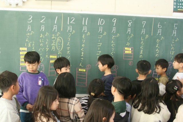 はっぴょう会のやくわりきめ(1年生) 公開日 2025/12/19 更新日 2025/12/19 1年生 1年生は、1月30日の じゅぎょうさんかんのときにはっぴょうする やくわりを きめました。じぶんの「がんばったこと」や「とくいなこと」をはっぴょうできると いいですね。がんばって! +5