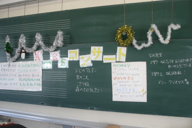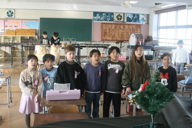 クリスマスコンサート(2の2) 公開日 2025/12/19 更新日 2025/12/19 2年生 2年生の音楽の時間・・・クリスマスコンサートを行いました。担任の先生をご招待して、練習の成果を発表しました。とても楽しそうに演奏したり歌ったりできましたね! +5