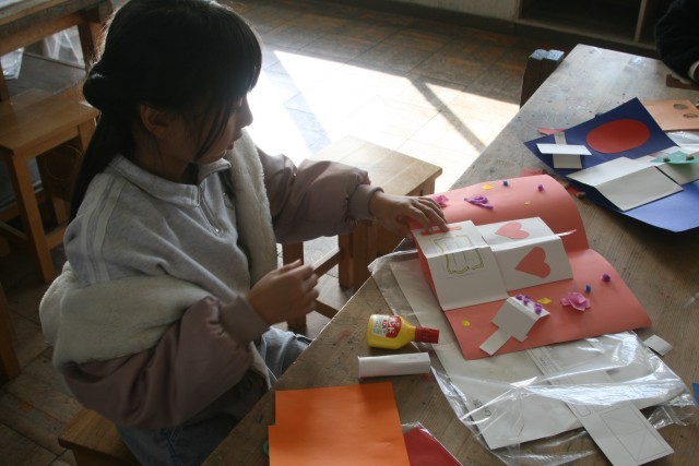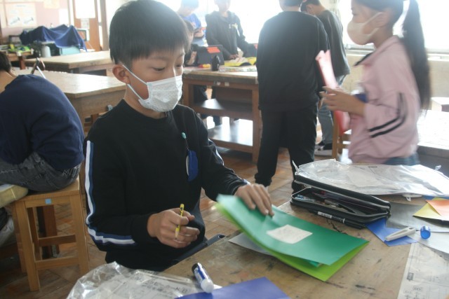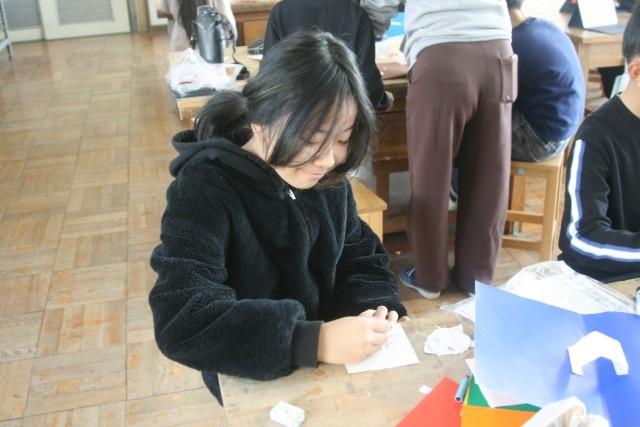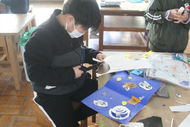 飛び出すカード(4の2) 公開日 2025/12/19 更新日 2025/12/19 4年生 4年生の図工の時間・・・「飛び出すカード」を完成させました。開いたときに、立体になるよう「しかけ」を施しています。どんな作品ができたのかな? +5
