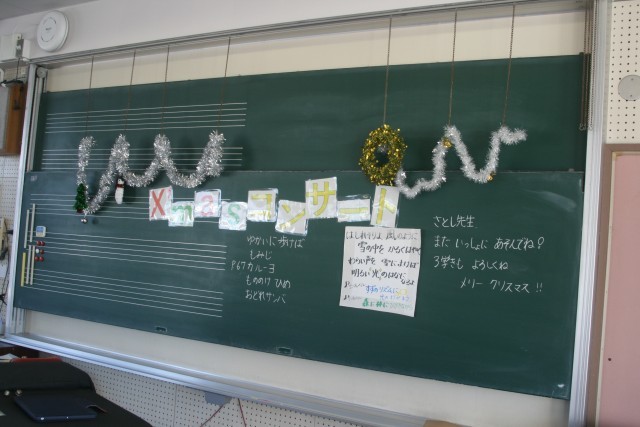 クリスマスコンサート(4の2) 公開日 2025/12/22 更新日 2025/12/22 4年生 4年生の音楽の時間・・・「クリスマスコンサート」を行いました。担任の先生をご招待した、心のこもったコンサートにあれっ 担任の先生の目に光るものが・・・感動のコンサートになりました! +5