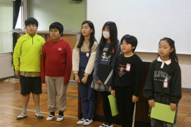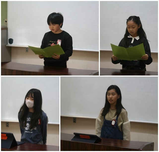 今回は、2年生と6年生、みどり学級の代表の子が発表しました。