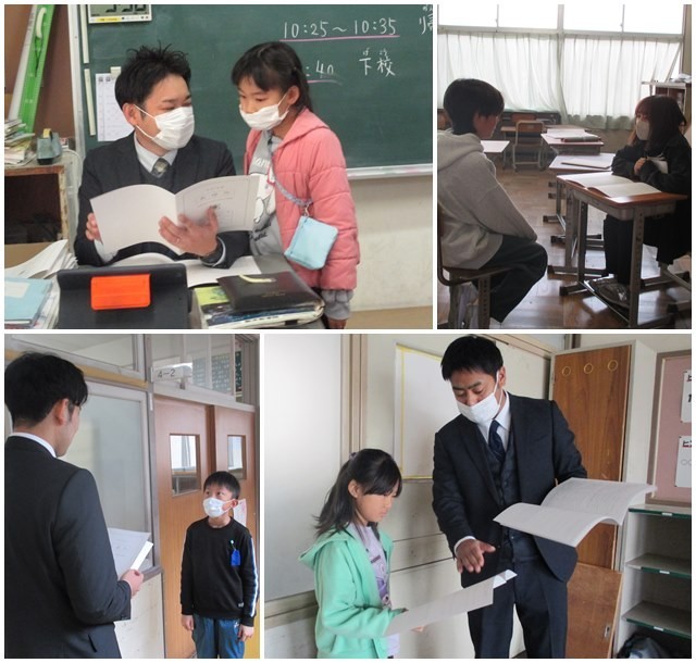2学期を振り返って 公開日 2025/12/23 更新日 2025/12/23 学校全体 終業式後は、2学期最後の学活です。担任の先生から一人ずつ、通知表が手渡されました。通知表を通して、2学期の振り返りができました。どの学年も待っている子の姿が立派でした。