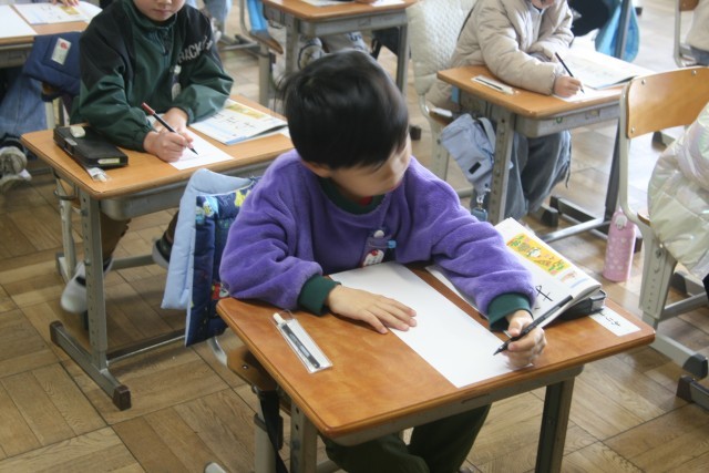 かきぞめ(1の2) 公開日 2026/01/08 更新日 2026/01/08 1年生 1年生のしょしゃのじかん・・・かきぞめをおこないました。お題は「お正月」。ていねいに かん字も かけるようになりました!どんな「お正月」をすごしたのかな? +5