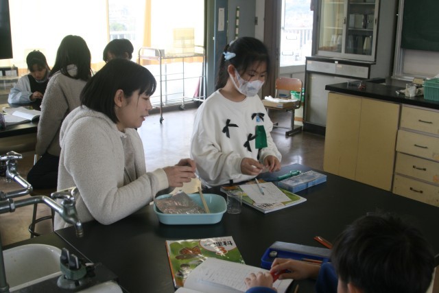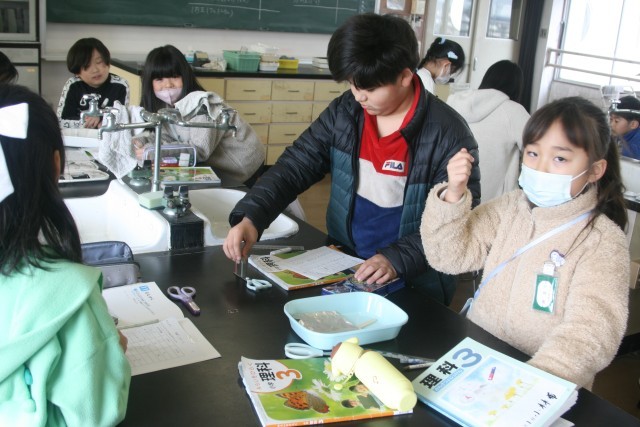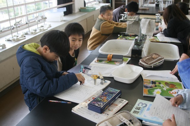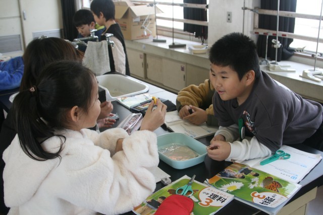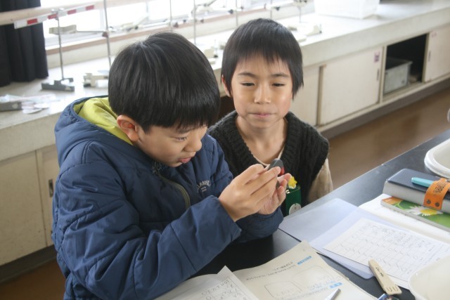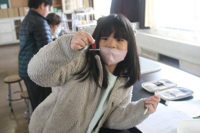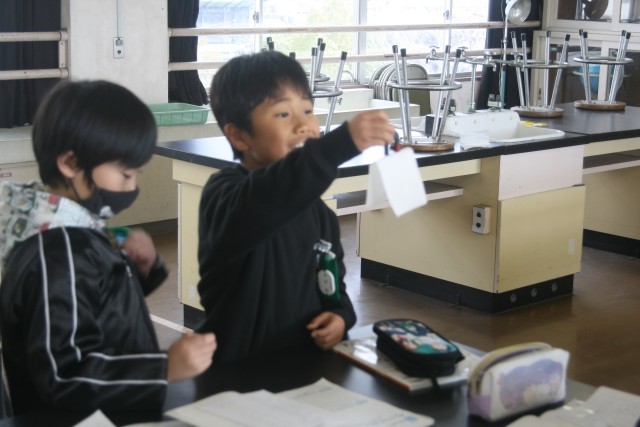 磁石の実験(3の1) 公開日 2026/01/14 更新日 2026/01/14 3年生 3年生の理科の時間・・・磁石の実験を行っていました。「どういうものに 磁石がくっつくのかを調べよう」ということで、クリップや割り箸、アルミ箔、はさみなどに磁石がくっつくかを調べていました。 +5
