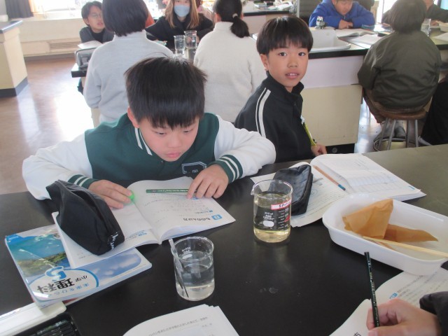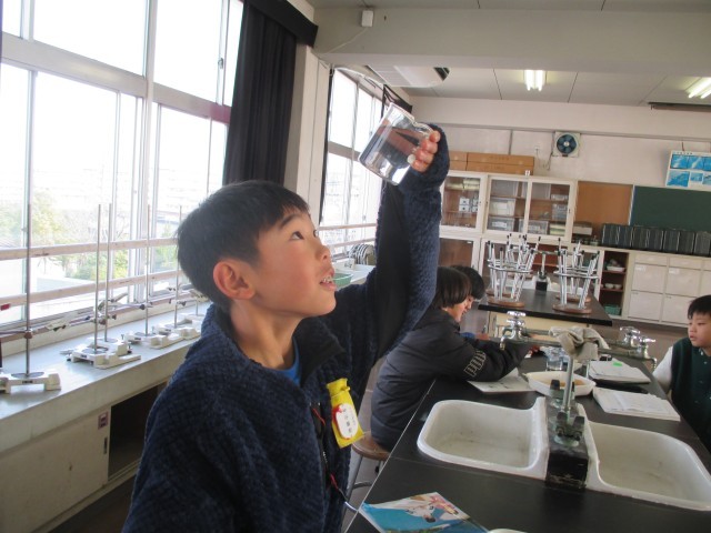 うまくとけるかな?(5の2) 公開日 2026/01/15 更新日 2026/01/15 5年生 水溶液の重さと水・中に溶けている食塩やミョウバンの重さの関係を実験で確かめました。食塩やミョウバンがきれいに溶けたか、水の中でどうなっているのか、など、じっくり観察をしました。 +1