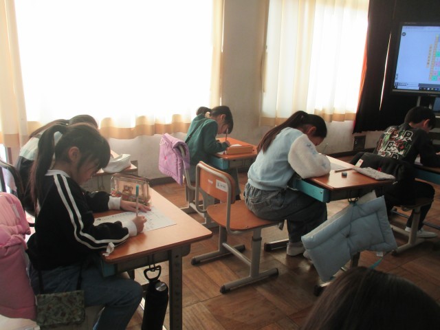 3学期の身体測定の最終日。2年生のみんな、すくすく、元気に成長しています。