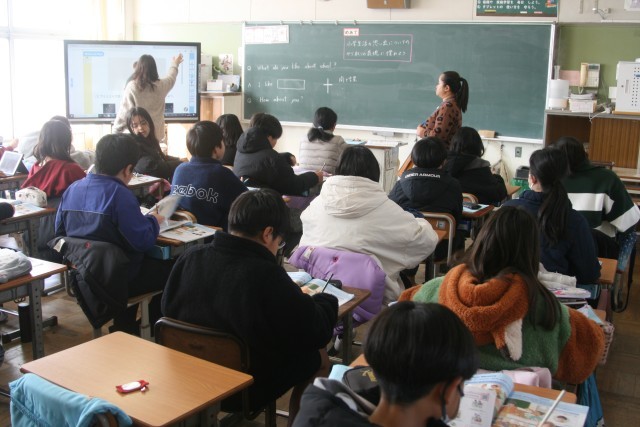 What do you like about school?(6の1) 公開日 2026/01/16 更新日 2026/01/16 6年生 6年生の外国語の時間・・・小学生活の思い出のやりとりの表現を学んでいました。What do you like about school?を使って、どんな思い出なのかを、自分で表現します。うまくできたかな? +5