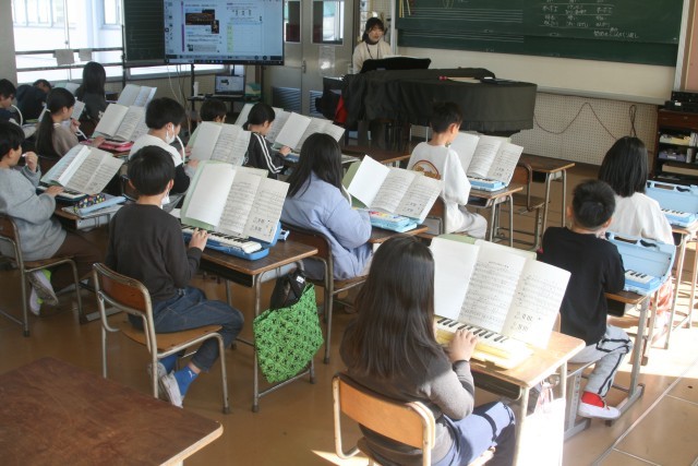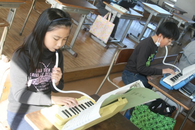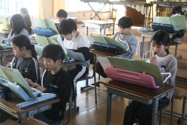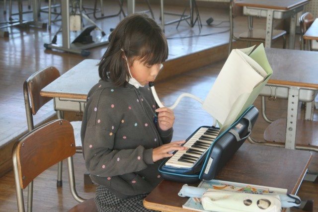 ラ クンパルシータ(4の2) 公開日 2026/01/21 更新日 2026/01/21 4年生 4年生の音楽の時間・・・「ラ クンパルシータ」を、今日は鍵盤ハーモニカで演奏しました。基本の指づかいをしっかりと教わって、きれいな音色を出していました。みんなの音がそろうと、とてもかっこいいですね! +5
