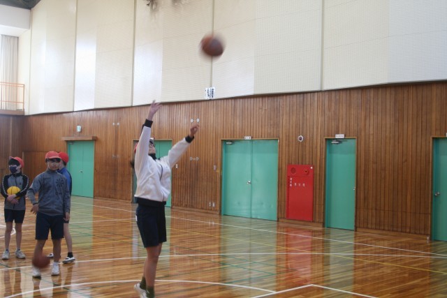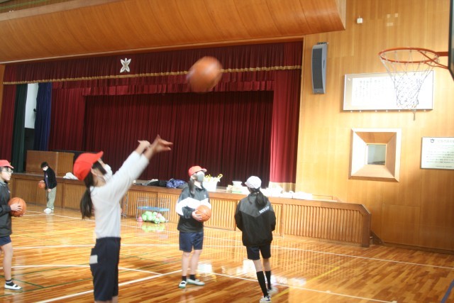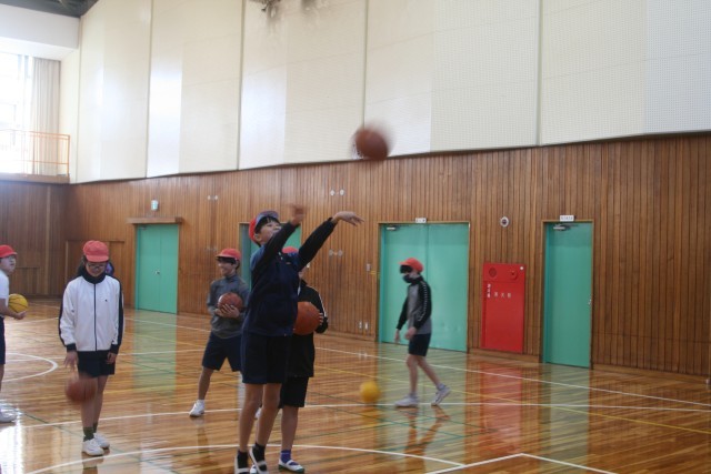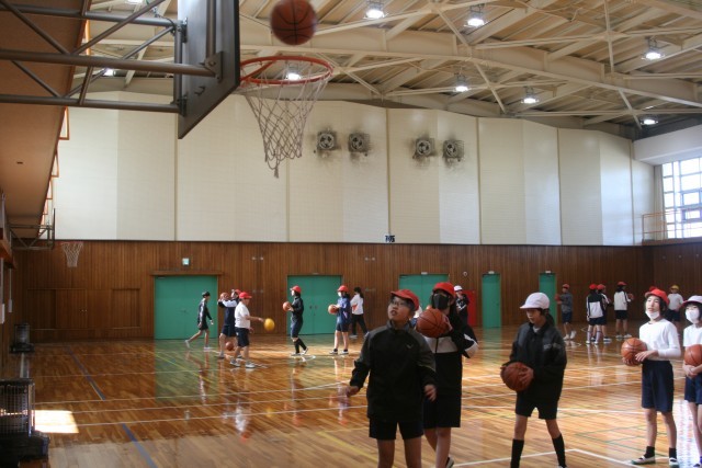バスケットボール(6の1) 公開日 2026/01/22 更新日 2026/01/22 6年生 6年生の体育の時間・・・バスケットボールをはじめました。レイアップシュートとセットシュートのやり方を先生に教わり、実際にシュートをしていましたが、なかなか思った通りにできなかった様子です。これからたくさん練習して、うまくなるといいね! +5
