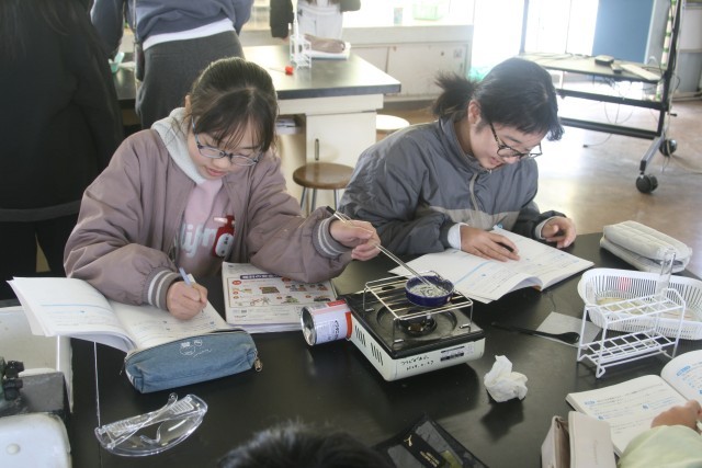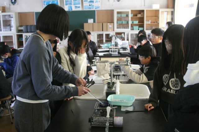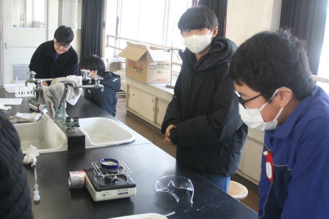 水溶液を熱して、水溶液の中に溶けている固体を取り出していました。