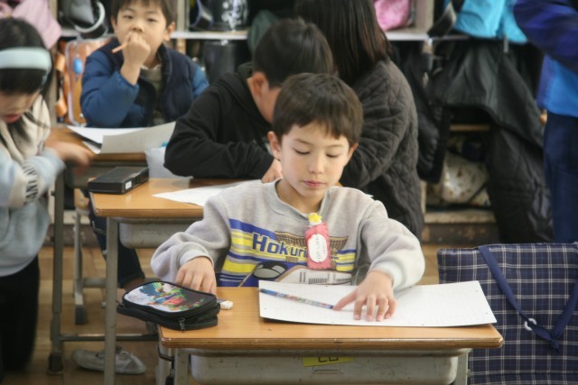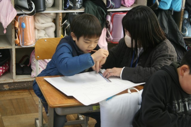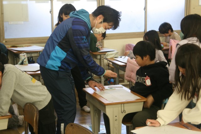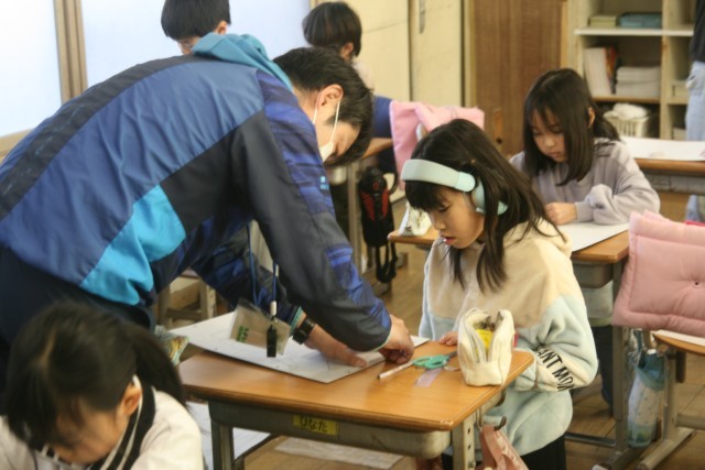 光のプレゼント(2の1) 公開日 2026/01/28 更新日 2026/01/28 2年生 2年生の図工の時間・・・「光のプレゼント」の教材に取りかかりました。まずは下絵を描きました。形がくっきりと出るよう、先生に教わっていました。完成が楽しみですね! +5
