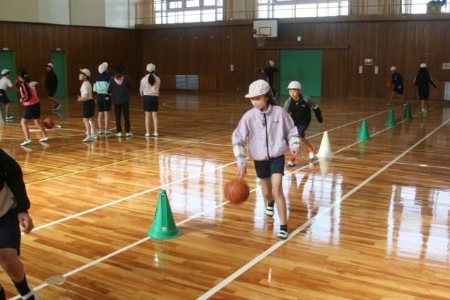 バスケットボール(5年生) 公開日 2026/01/28 更新日 2026/01/28 5年生 5年生の体育の時間・・・バスケットボールを行いました。個人の技能を高めようと、さまざまな課題にチャレンジしています。ドリブル、セットシュート、ランニングシュート、2人組でパス交換からシュートまで・・・ゲームで活かせるようになるといいですね! +5