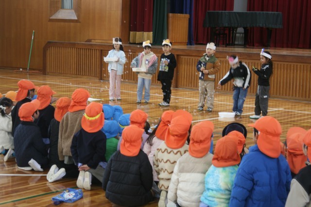 かっこいい1年生を見せられたかな?(1年生) 公開日 2026/01/29 更新日 2026/01/29 1年生 今日は、つつじが丘保育園とまさみ幼稚園の年長さんに、1年生の一年間の様子を発表しました。つつじっ子1年生の、かっこいいところを見せることができたかな?終わったあとは、どの子も笑顔いっぱいでした。 +2