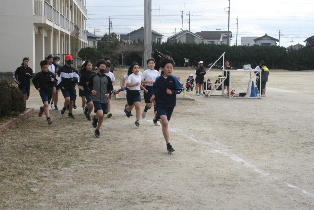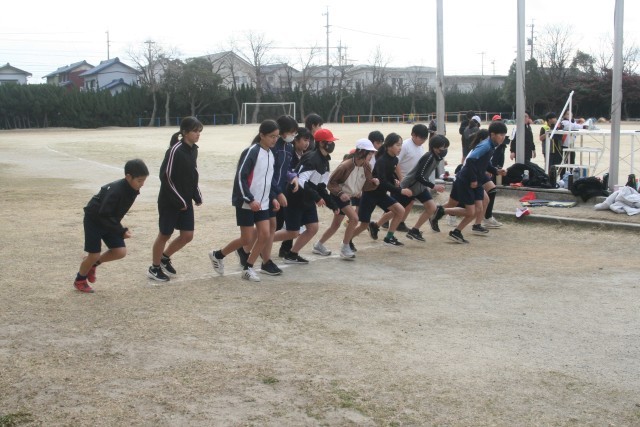 まずはウォーミングアップで、指定した2つの色の遊具を触って戻ってくる運動をしました。
