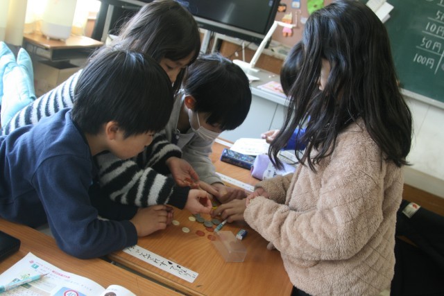 お金のしゅるいをかんがえて、おかいものをするがくしゅうをしました。