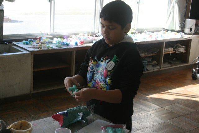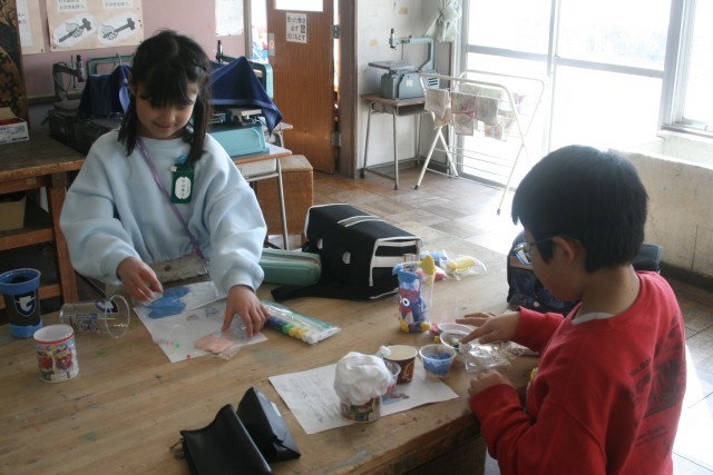 空きようきのへんしん(3の2) 公開日 2026/02/02 更新日 2026/02/02 3年生 3年生の図工の時間・・・「空きようきのへんしん」に取り組んでいました。空きようきを利用して、色をつけた紙粘土をひっつけて、かわいらしい、斬新な?、デザインをほどこしています。笑顔で楽しそうに作っていました。 +5