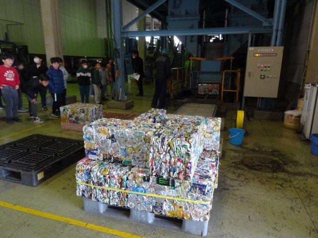 アルミ缶がプレスされて、大きな塊になっている姿を見て