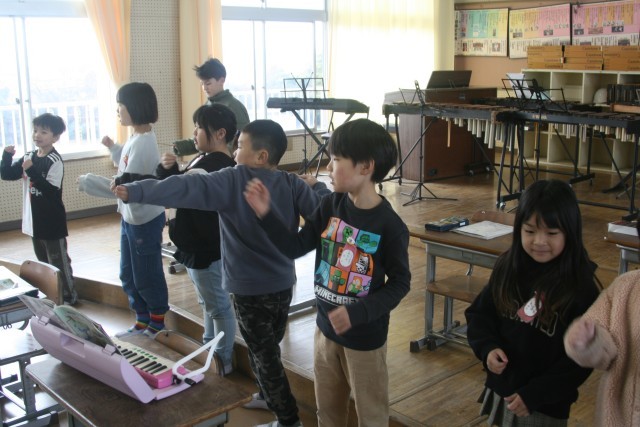汽車は走る(2の2) 公開日 2026/02/06 更新日 2026/02/06 2年生 2年生の音楽の時間・・・「汽車は走る」を 様々な楽器で合奏し、踊っていました。たくさん練習してきたので、もう慣れたものです。顔を上げてまわりを見て演奏する子もいました。ダンスチームは、ノリノリで汽車の動きをしています。楽しそうですね! +5