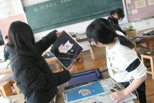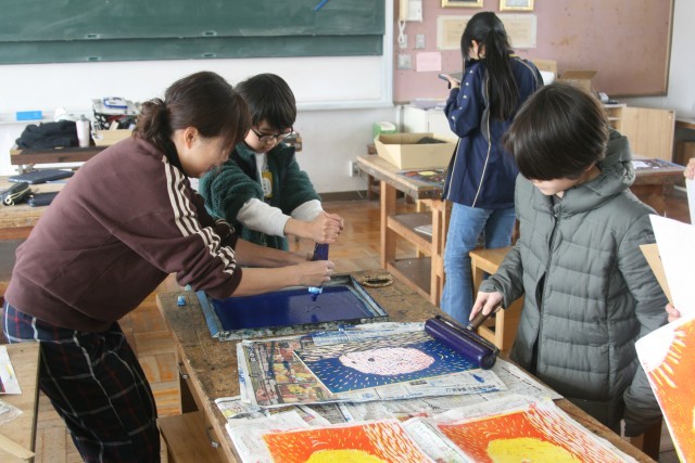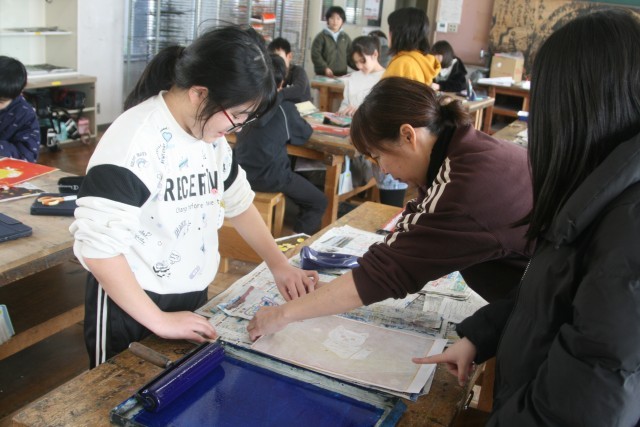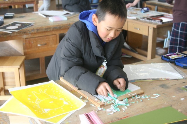 版画(5の2) 公開日 2026/02/10 更新日 2026/02/10 5年生 5年生の図工の時間・・・版画を進めていました。もうちょっと彫りたい子・・・ようやく最後の色を刷りはじめた子・・・作品が完成した子・・・それぞれの進度でがんばっていました! +5