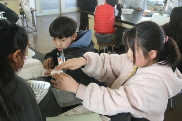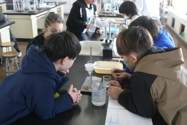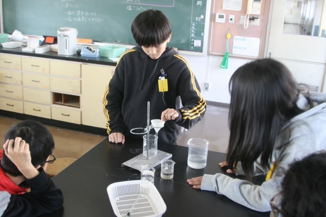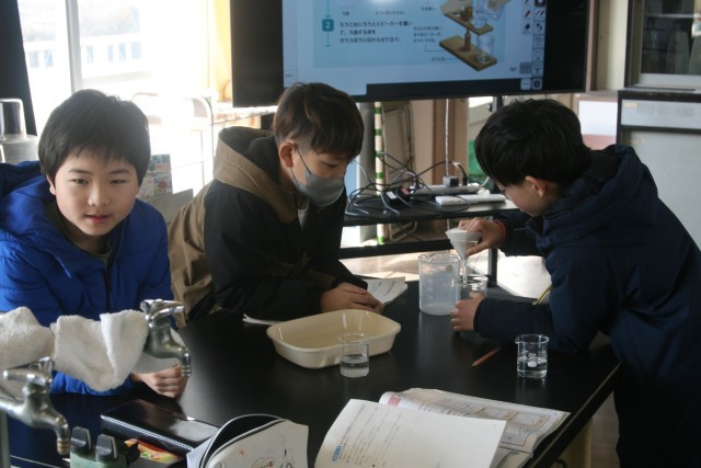 ろ過の仕方(5の1) 公開日 2026/02/12 更新日 2026/02/12 5年生 5年生の理科の時間・・・前時までに行った実験結果からの課題で、「冷やしたら、溶けているミョウバンは、とりだせるのか?」ということを調べる実験を行います。まずはその前に、「ろ過」の仕方について学びました。「あっこれ、コーヒーと同じだ!」そんな声も聞こえてきました。 +5