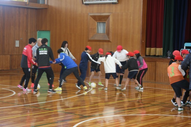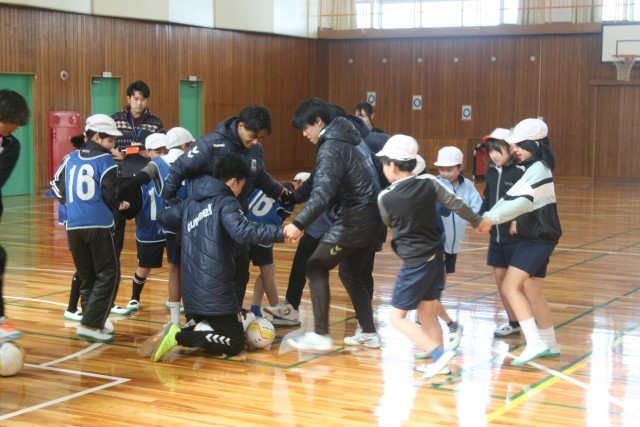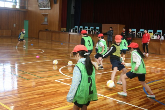 オーシャンズ出前授業(4年生) 公開日 2026/02/17 更新日 2026/02/17 4年生 4年生が、名古屋オーシャンズさんをお招きし、フットサルの出前授業を受けました。フットサルのプロの選手から、直接教えていただける機会なので、子ども達はとても楽しみにしていました。ボールを蹴るのが苦手の子も、フットサルの楽しさを感じられたようです。名古屋オーシャンズの皆様、ありがとうございました! +5