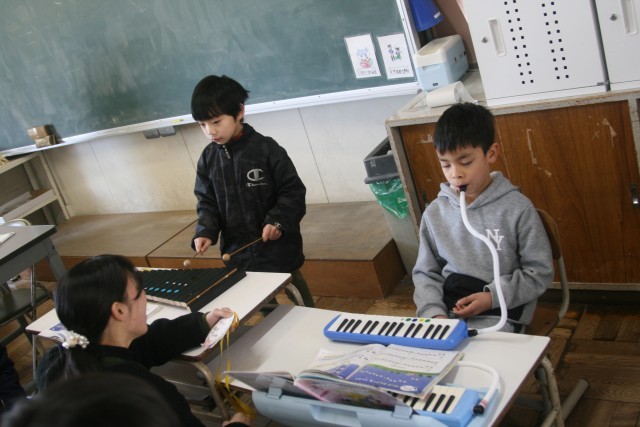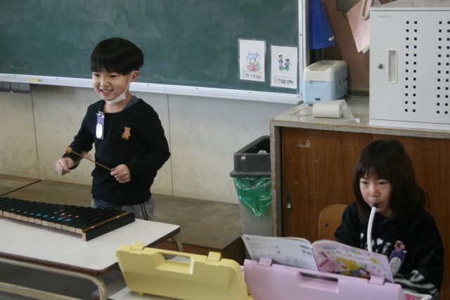 木きん と けんばんハーモニカ で きらきらぼしの えんそうテストを しました。