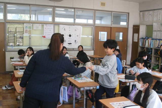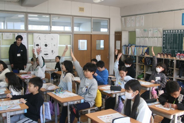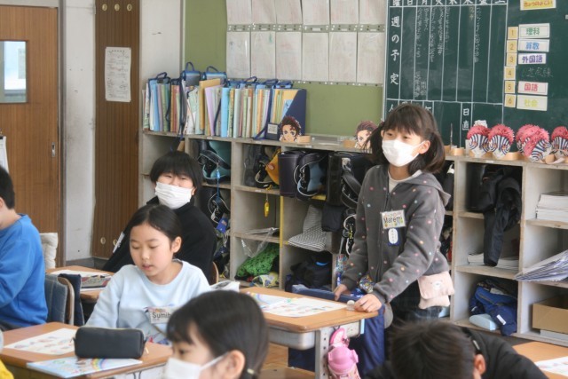 Unit9 This is my day.(4の2) 公開日 2026/02/19 更新日 2026/02/19 4年生 1日の過ごし方を英語でどのように表現するかを学習していました。アン先生のジェスチャーを見て、何をしているか当て、英語で答えていました。 +5
