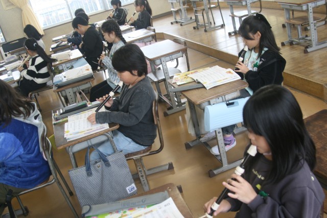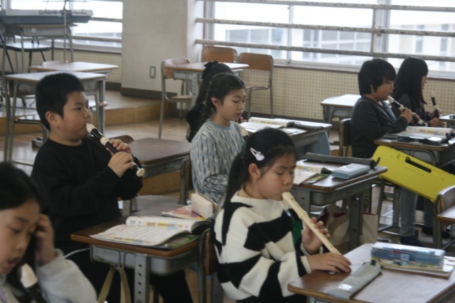 冬さん、さようなら(3の1) 公開日 2026/02/25 更新日 2026/02/25 3年生 3年生の音楽の時間・・・「冬さん、さようなら」をリコーダーで演奏しました。リコーダーの二重奏を楽しめる曲で、2つのパートの合奏が成功すると、素敵な音色が感じられました! +5