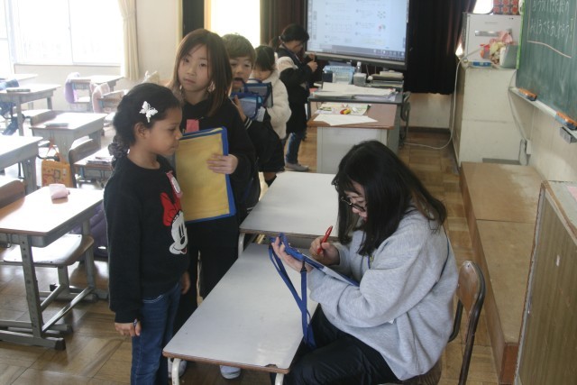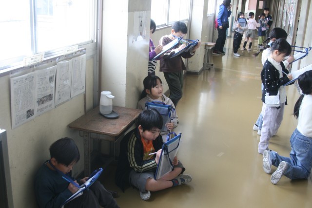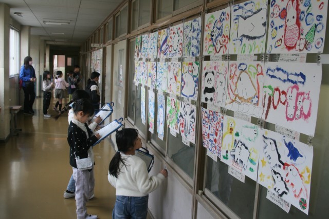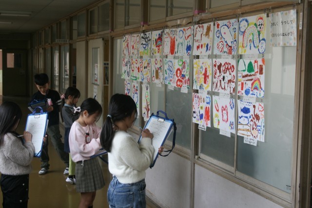 「たのしくうつして」鑑賞会(2の2) 公開日 2026/03/06 更新日 2026/03/06 2年生 2年生の図工の時間・・・完成した「たのしくうつして」の作品の鑑賞会をしました。友達の作品を鑑賞し、良かった点を書き出しています。自分にはなかったアイデアが見られると、次は自分もそうやってみようと思えますね。 +5