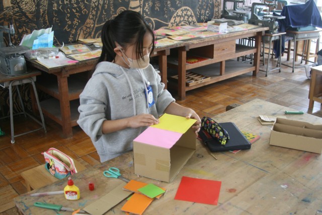 引き出しタイプにしたり、色紙を貼ってカラフルな色にしたりと
