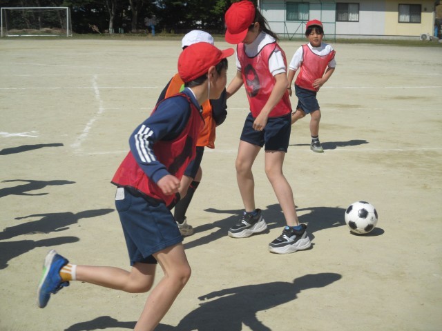 ミニサッカーのゲームをしている様子です。