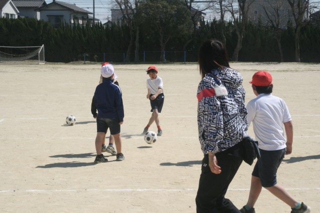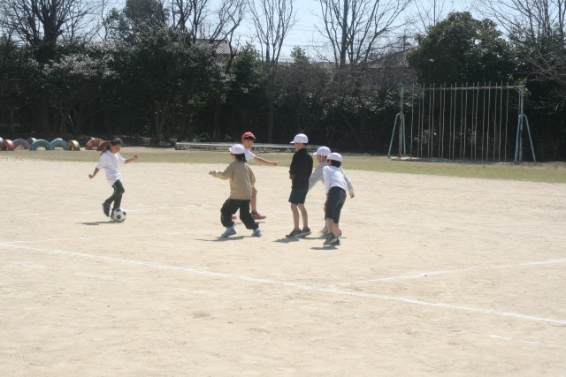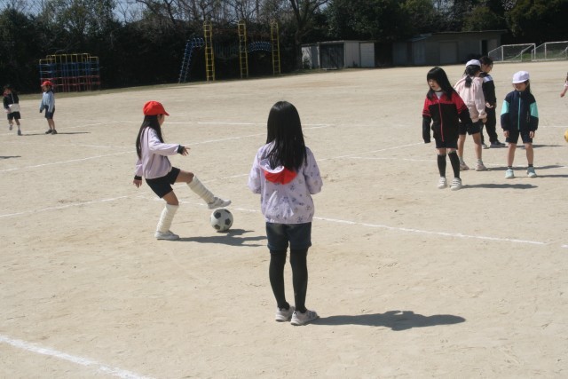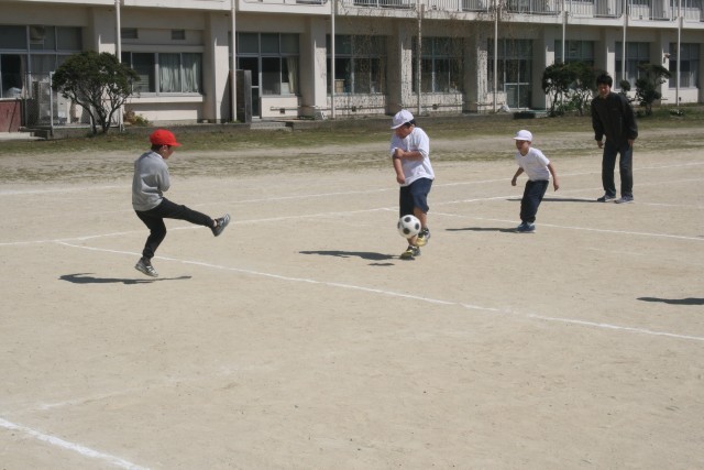 サッカー(2年生) 公開日 2026/03/16 更新日 2026/03/16 2年生 2年生の体育の時間・・・サッカーを行いました。コートのまん中で守る子に取られないように、反対側の子にパスを送るゲームをしていました。ディフェンスに取られないように、パスを受ける子が動く意識が高まるといいですね。 +5