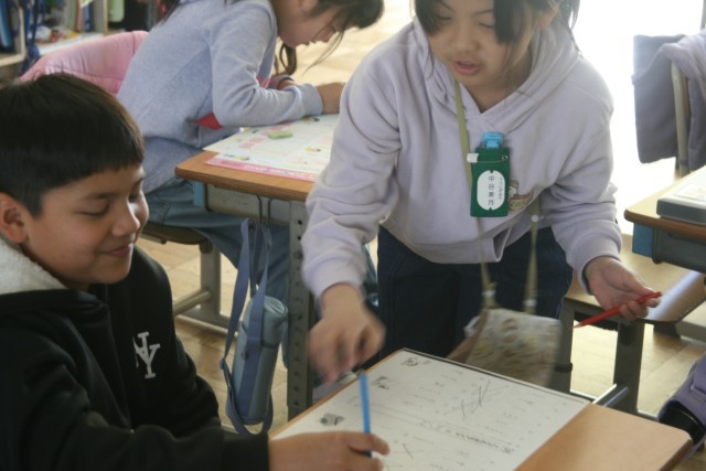 ことわざ(3の2) 公開日 2026/03/16 更新日 2026/03/16 3年生 3年生の国語の時間・・・ことわざの学習をしました。石の上にも・・・犬も歩けば・・・魚心あれば・・・火中の・・・言葉は、ちょっとずつ覚えてきた様子ですが、まだ、意味と結びつかないようでした。 +5