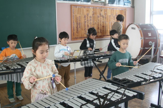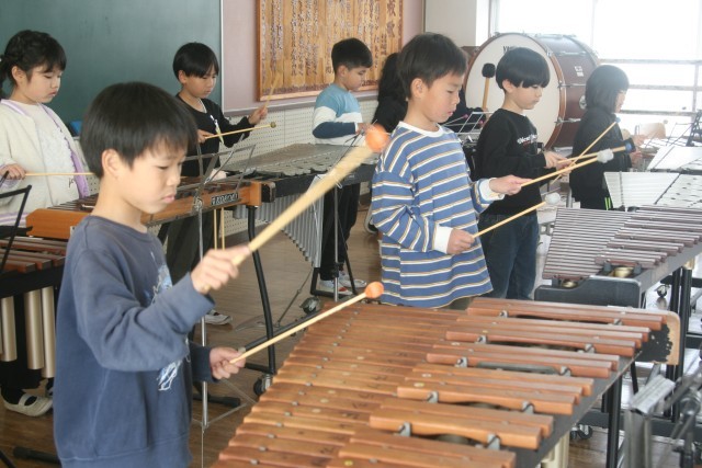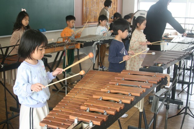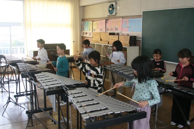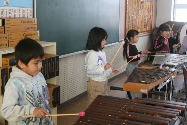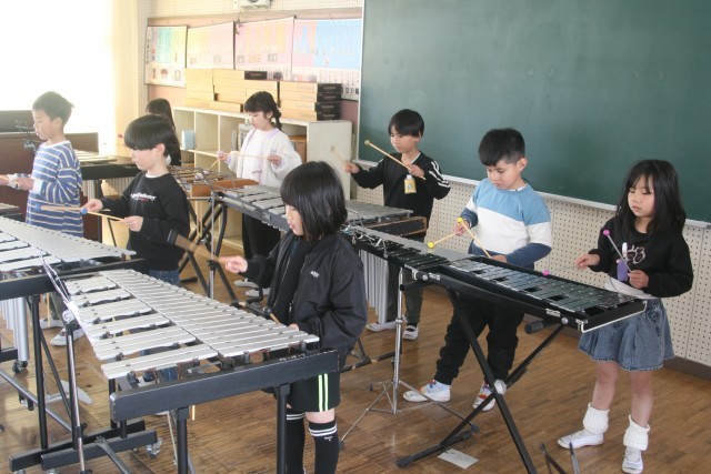 ごうどうおんがく(1年生) 公開日 2026/03/18 更新日 2026/03/18 1年生 1年生のおんがくのじかん・・・1年生での さいごのおんがくです。1・2くみごうどうで はじめて だい1おんがくしつで おこないました。たくさんれんしゅうして じょうずに ひけるようになった「きらきらぼし」をこうたいで、ほんものの 「もっきん」や「てっきん」で えんそうしました。ほんものをえんそうできて、とてもうれしそうな ひょうじょうでした!2年生でも がんばるぞ! +5