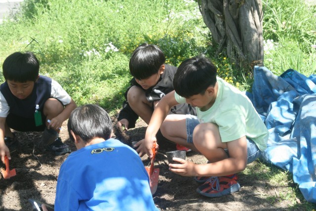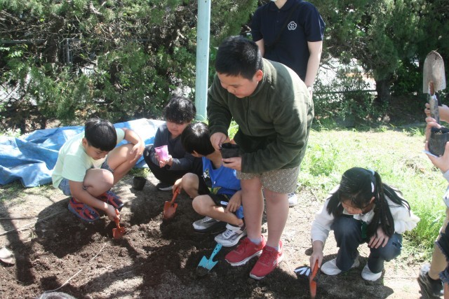 ヘチマの種植え(4の2) 公開日 2026/04/16 更新日 2026/04/16 4年生 4年生の理科の時間・・・ヘチマの種を植えました。まずは、教室で種の植え方等を確認した後、外へ出て、ポットに土を入れ、種を植えました。発芽率が50%ということも教えてもらったので、「発芽してね」と願いを込めて植えました。 +5
