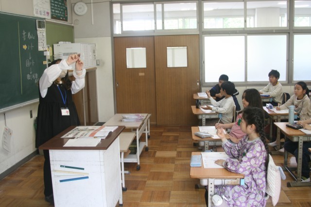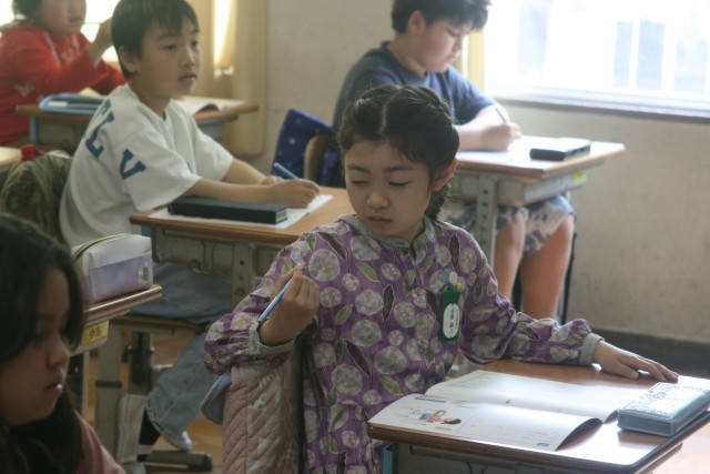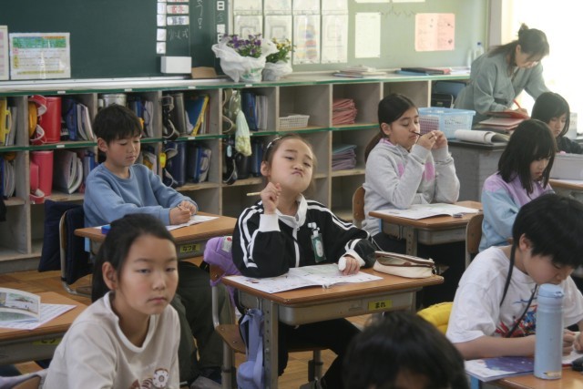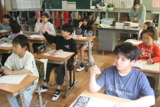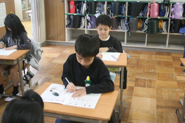 書写1回目(4の1) 公開日 2026/04/17 更新日 2026/04/17 4年生 4年生の書写の時間・・・今学年はじめの書写です。まずはみんなで「えんぴつの持ち方」と「正しい姿勢」について確認しました。実はなかなかうまくえんぴつを持てない子も多いようでした。姿勢は、基本の「グー」「ペタ」「ピン」を確認していました! +5