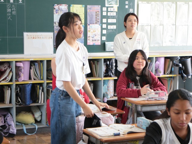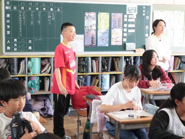 This is me !(6の1) 公開日 2026/04/17 更新日 2026/04/17 6年生 6年生の外国語の時間・・・Unit1「This is me!」の学習をしました。気分を表す単語を知りました。「Sad」「tired」「sleepy」など・・・今のあなたの気分はどんなですか?自分は・・・です、を英語で話す会話文に慣れ親しんでいました。 +5