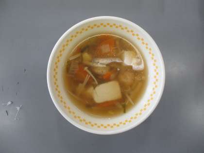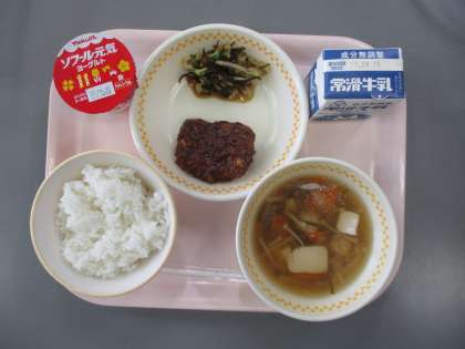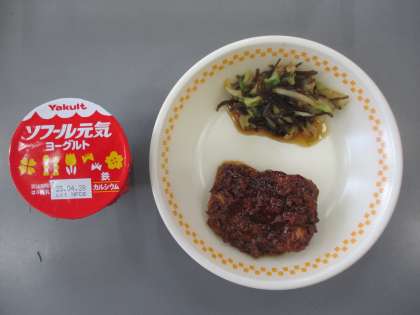 4/12(水)今日の給食 公開日 2023/04/12 更新日 2023/04/12 学校全体 [献立]640Kcal ○ご飯 ○牛乳 ○けんちんしのだの肉味噌かけ ○白菜の昆布和え ○鶏団子汁 ○ヨーグルト