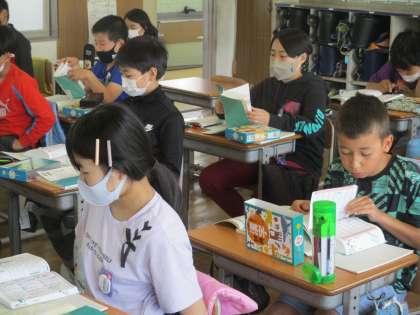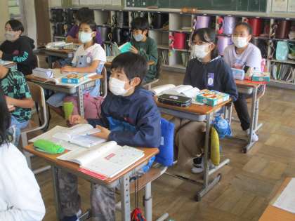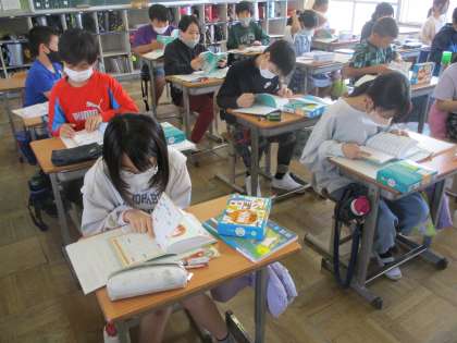 辞書を使って、漢字の成り立ちについて学習しています。索引を効果的に活用したいですね。