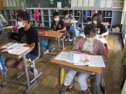 5/9(火)聞いて考えを深めよう(6の2) 公開日 2023/05/09 更新日 2023/05/09 6年生 話題について自分の考えを決め、今後、話し合いに参加します。先生の説明をしっかりと聞いています。