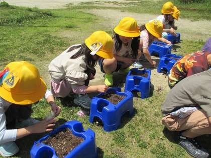 5/9(火)あさがおのたねをまいたよ 公開日 2023/05/09 更新日 2023/05/09 1年生 きのうはあさがおのたねをかんさつしました。きょうはたねまきです。たねにつちをかぶせたら「おおきくなあれ」とおまじないをかけました。