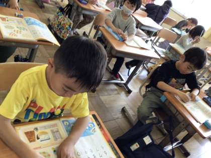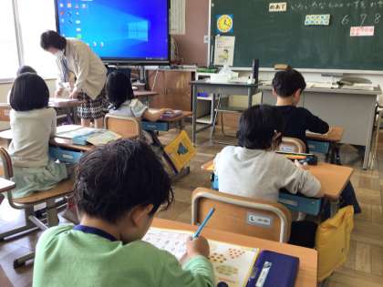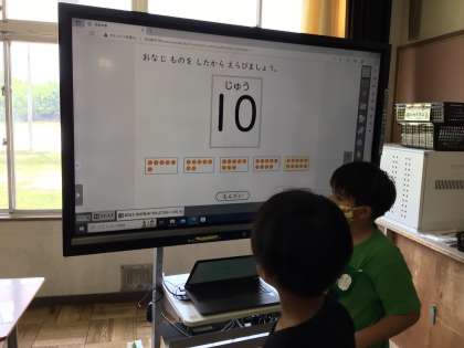 1組では、先生に合格がもらえたら、電子黒板の問題に挑戦していました。