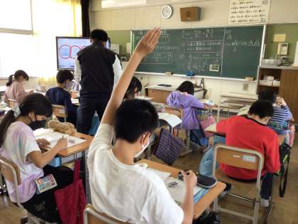 分数×整数の計算の仕方を学習していました。すらすら解けるように練習問題に取り組んでいました。