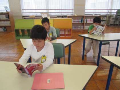 5/19(金)雨なので・・・ 公開日 2023/05/19 更新日 2023/05/19 児童会・委員会 今日はあいにくの雨なので、大放課に外遊びができませんでした。その代わりに、図書館をのぞいてみると・・・。